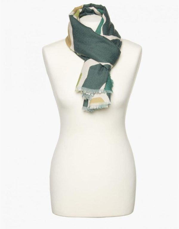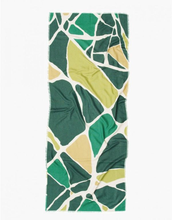 – Echarpe imprimée vert avec franges 2x2cm