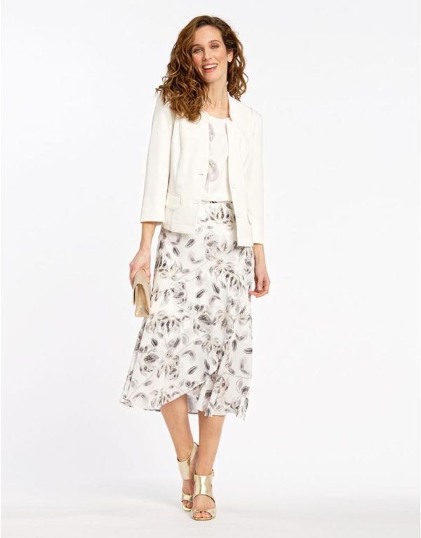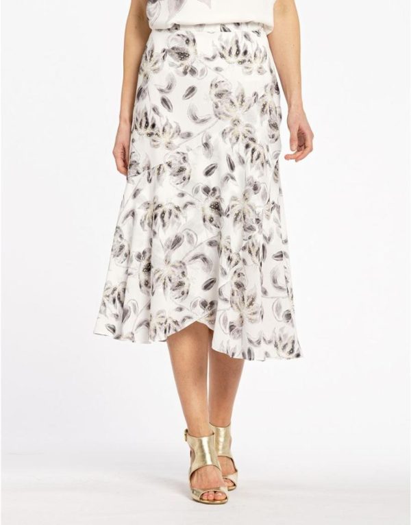 – Jupe longue fluide asymétrique effet volants