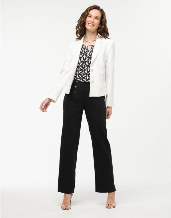 A porter en mode tailleur monochrome avec la veste chic blanche (23ED4293060) et le top graphique chic noir et blanc (23ED4697285)