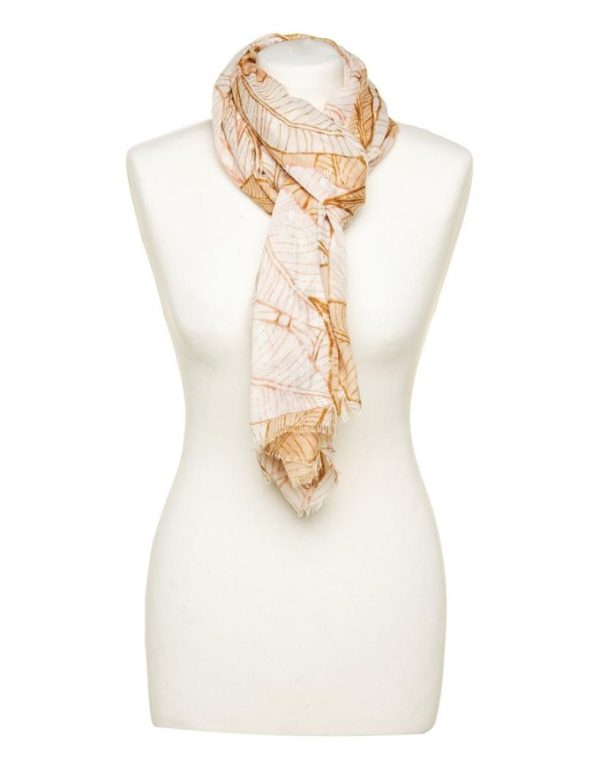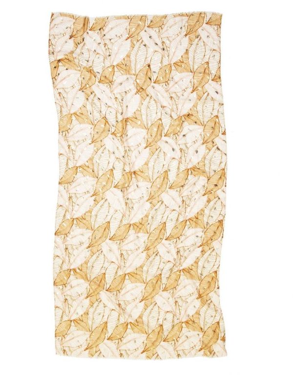 – Foulard camel imprimé feuillages marron