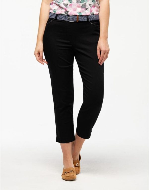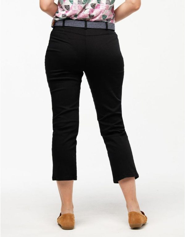 – Aussi cool qu’élégant, le pantacourt noir propose une taille élastiquée pour un effet ventre plat.