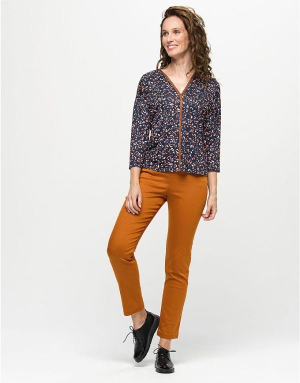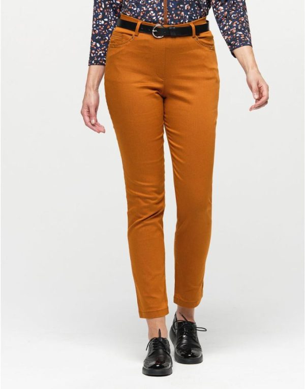 – Jegging stretch 7/8 ocre en coton mélangé