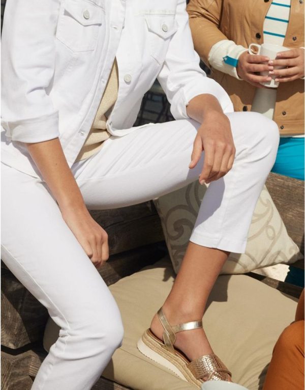 – Le jean blanc se pare de détails sophistiqués pour des looks casual chic.