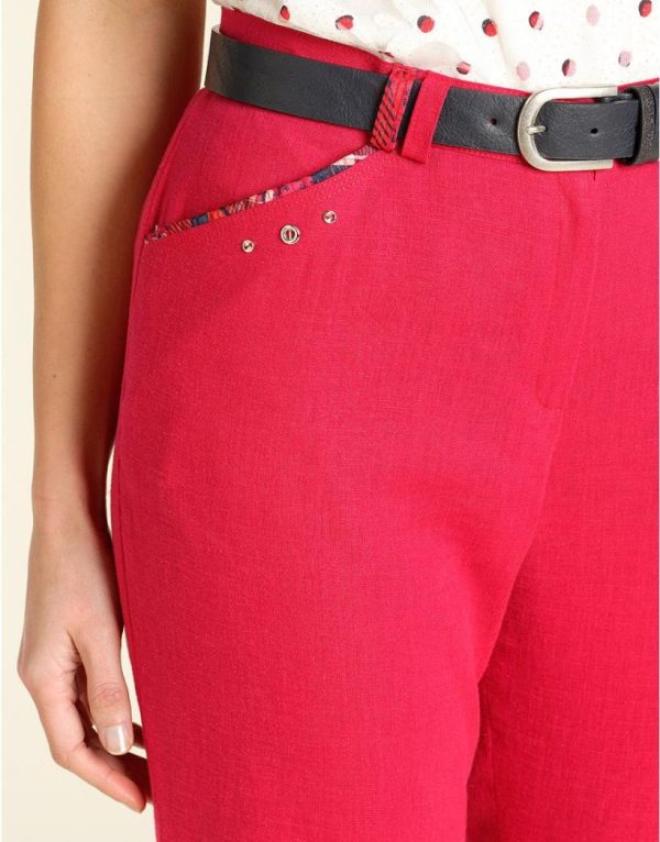 – Coupe droite, taille ajustée, avec élastique aux côtés a partir de la taille 44, pour plus de confort