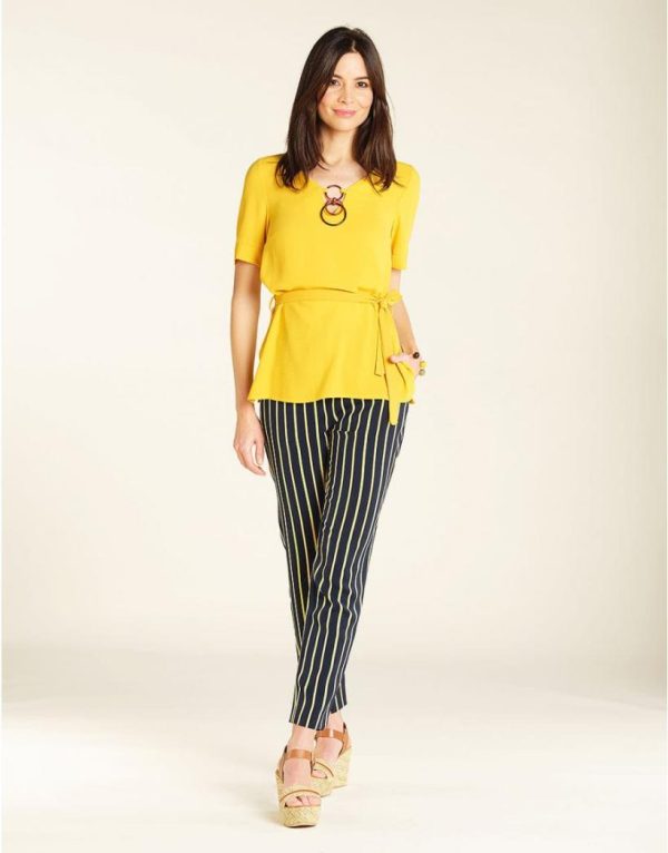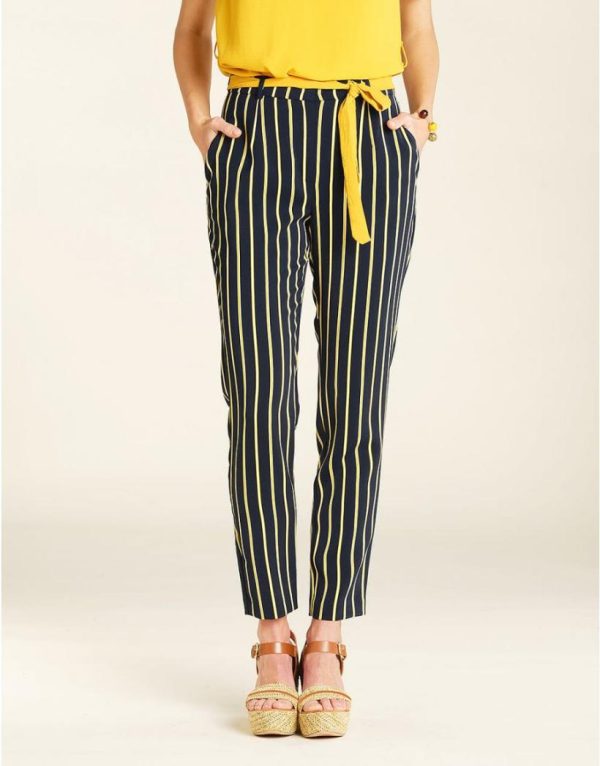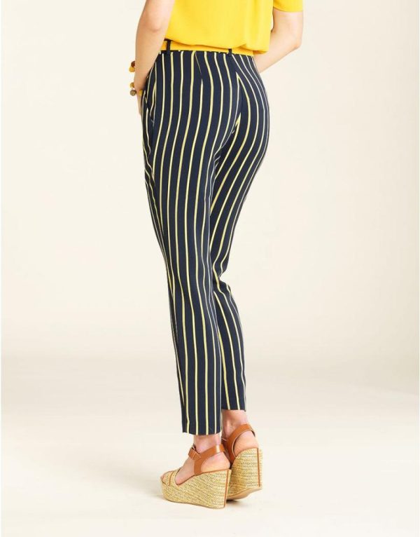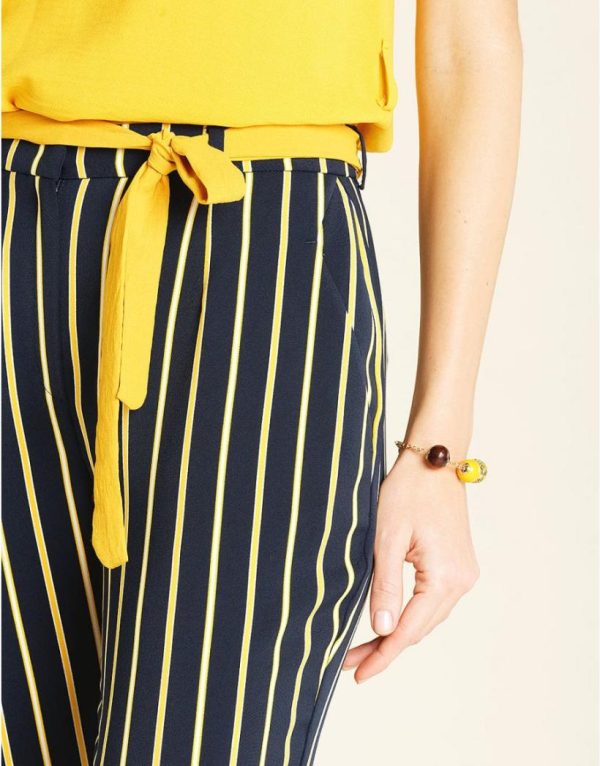 – Pantalon fluide à rayures bleu marine et jaune