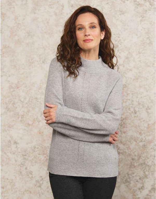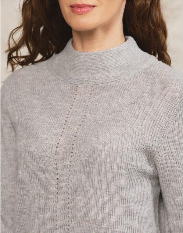 – Particulièrement douillet avec son col montant, ce pull séduira les amatrices de matières nobles : 90% laine, 10% cachemire. Une jauge généreuse pour affronter l’hiver.