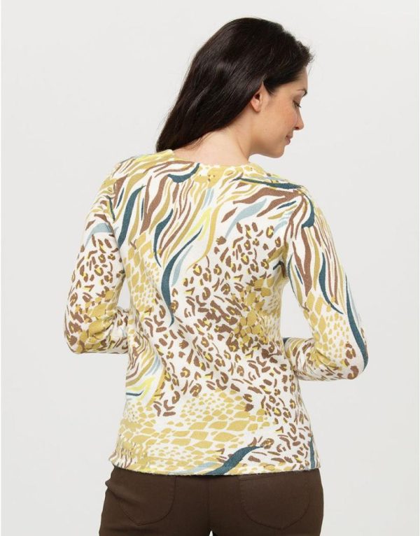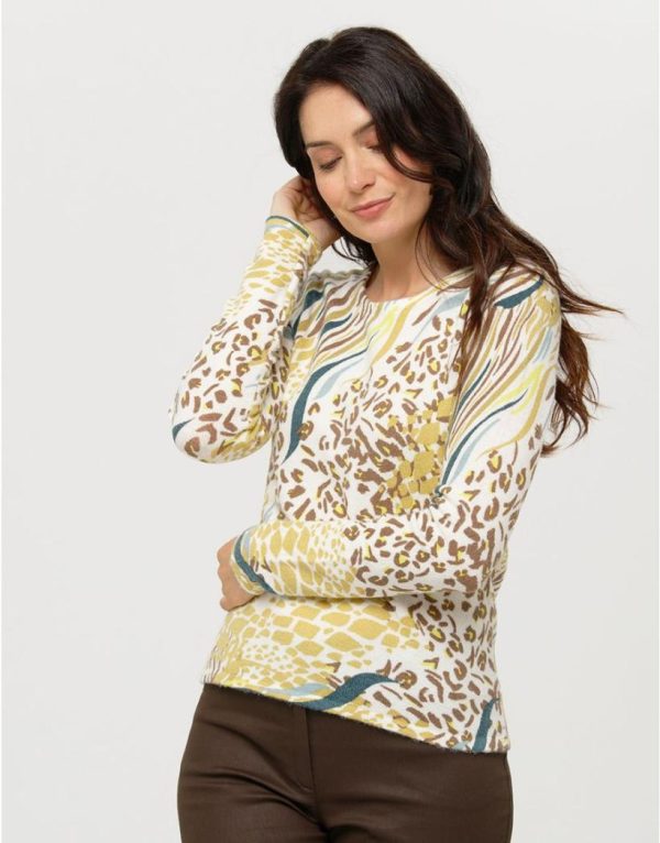 – En mode safari urbain avec ce joli pull aux motifs exotiques, mélange d’imprimé léopard et touches végétales.