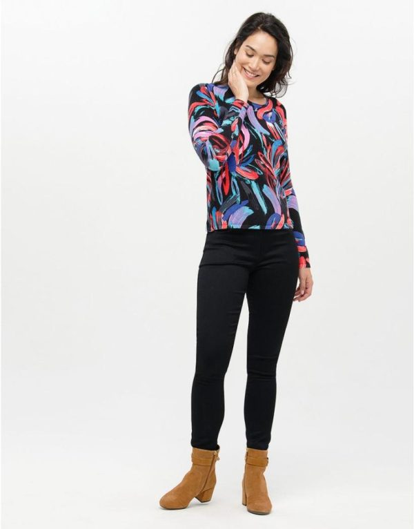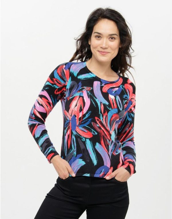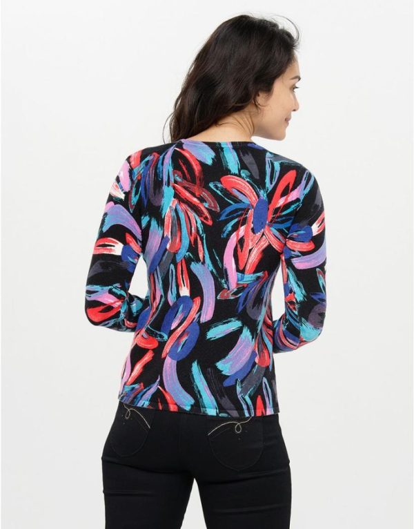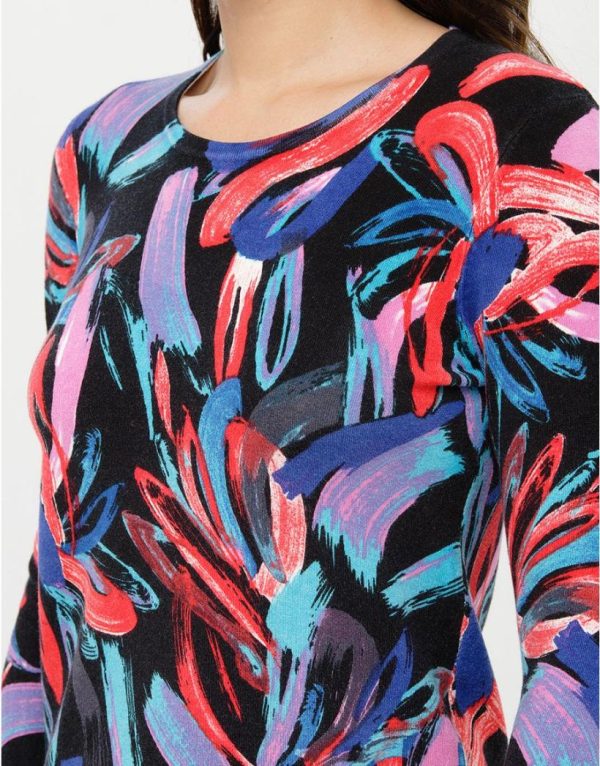 Pulls Et Gilets Col Rond | Femme Christine Laure Pull Noir Rose à Motifs