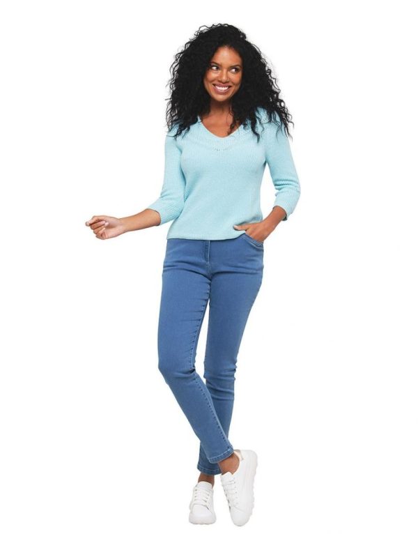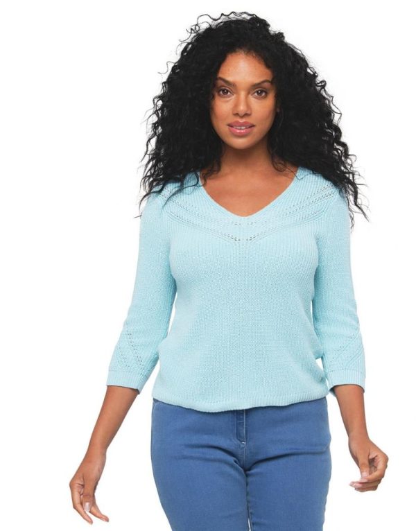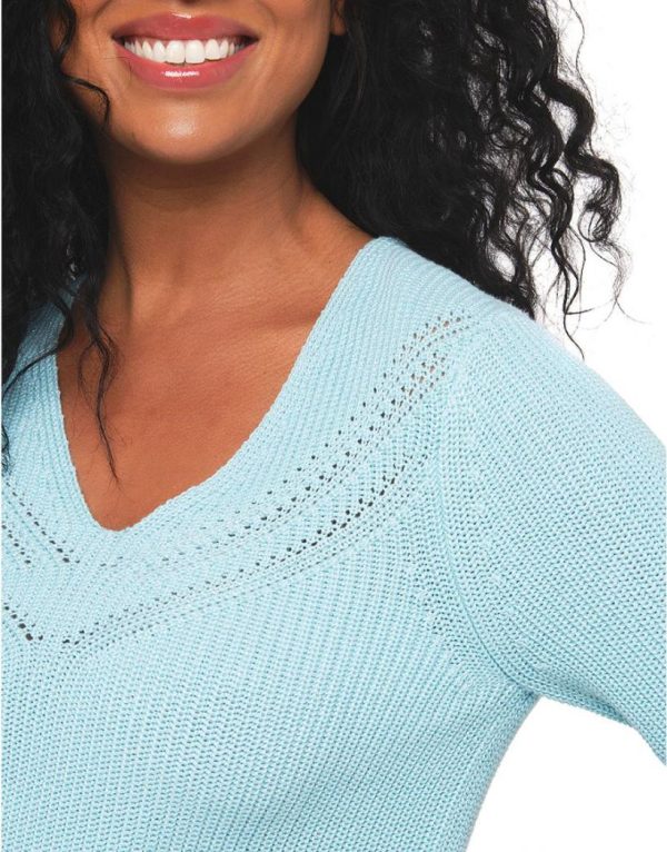Pulls Et Gilets Col V | Femme Christine Laure Pull Bleu Ciel Irisé