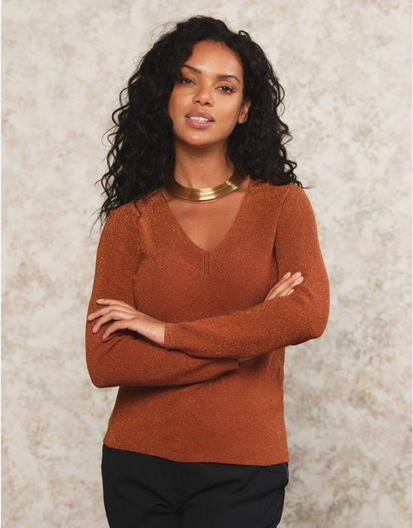 – Pull marron en maille avec détails ajourés