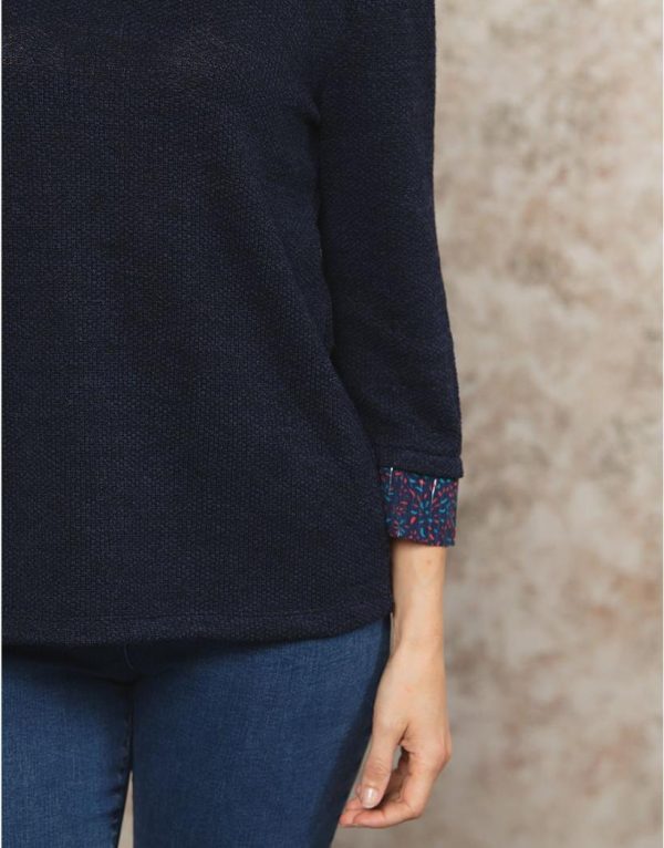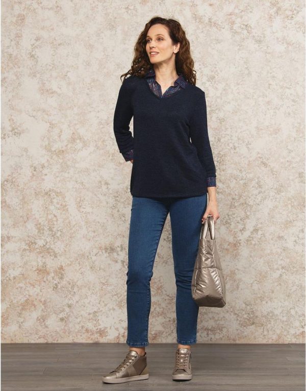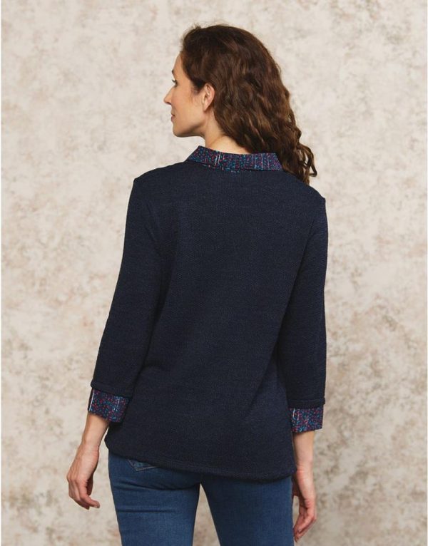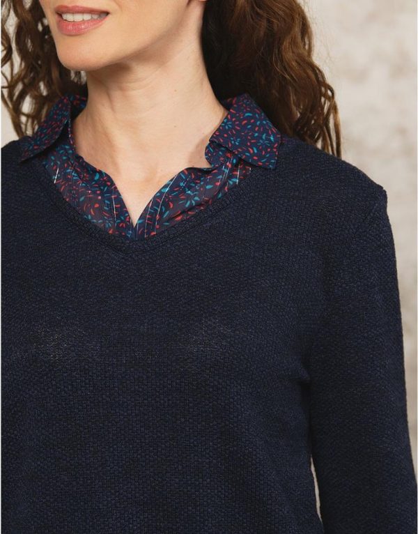 – Pull bleu marine en maille 2 en 1 avec chemisier intégré