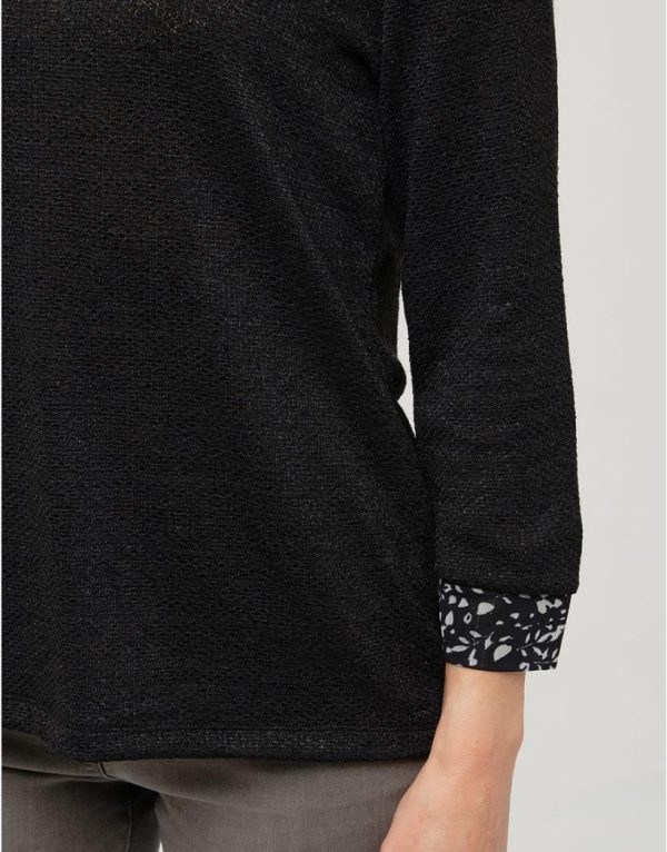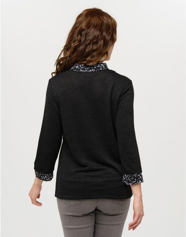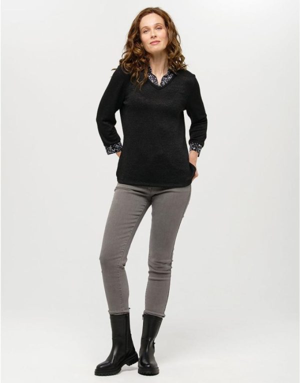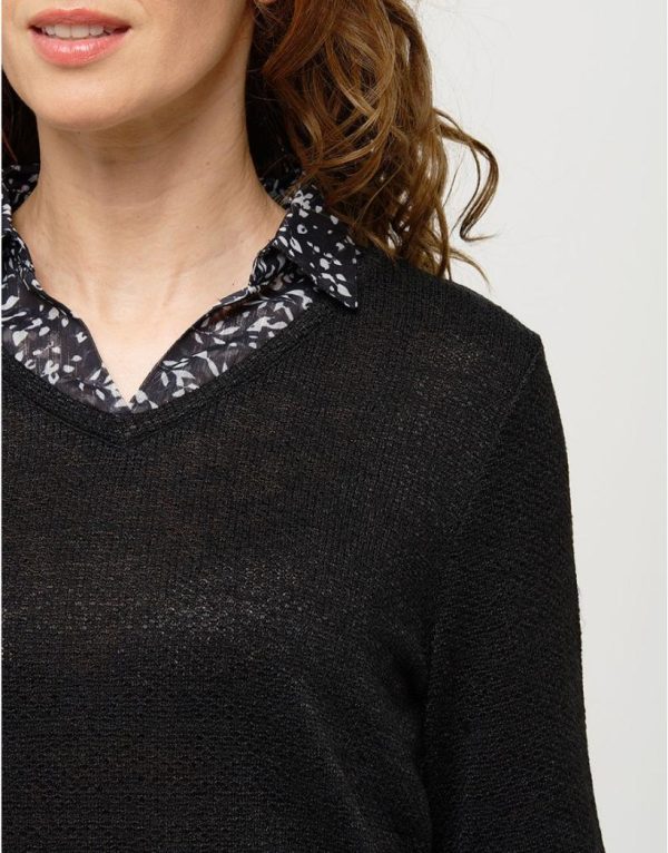 – Pull à encolure V avec chemisier attenant.