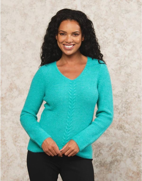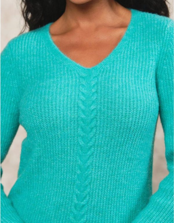 – Une maille épaisse et moelleuse, un col V léger, un jeu de torsade discret : voici le pull uni parfait pour cet hiver!