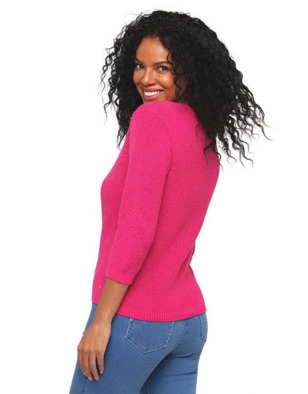 – Doux et chaud, ce petit pull rose se porte aussi facilement qu ‘un
