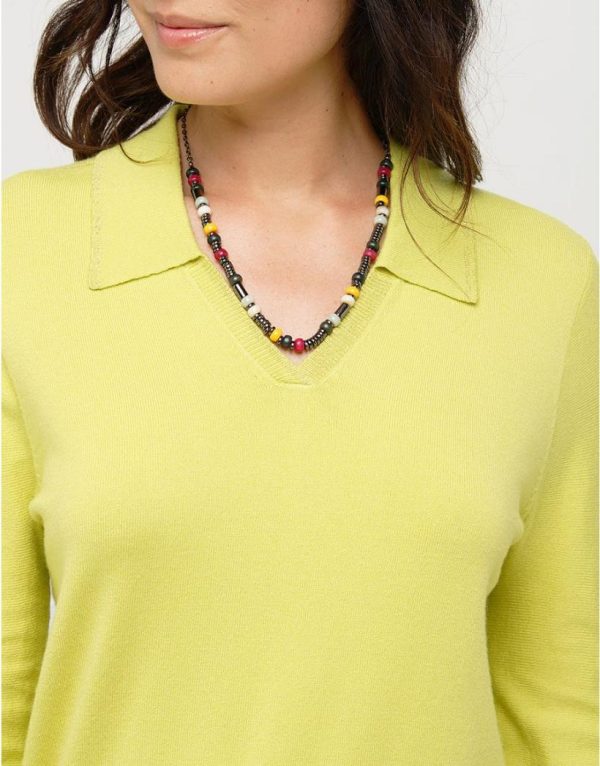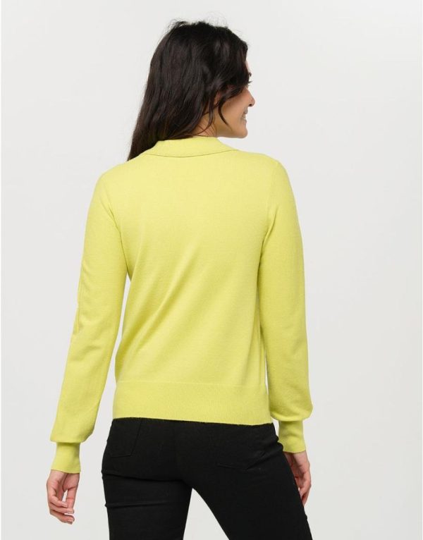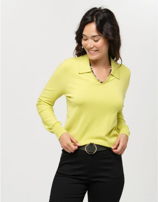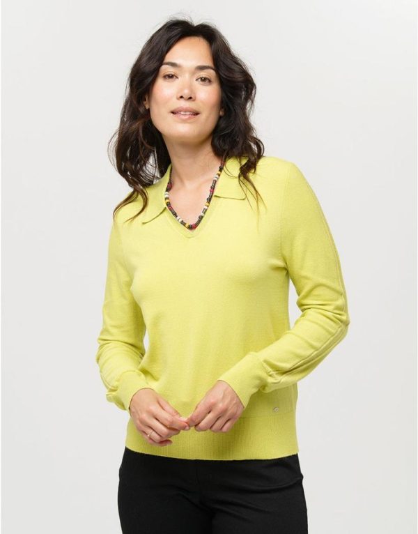 – Pull à col polo en maille vert anis