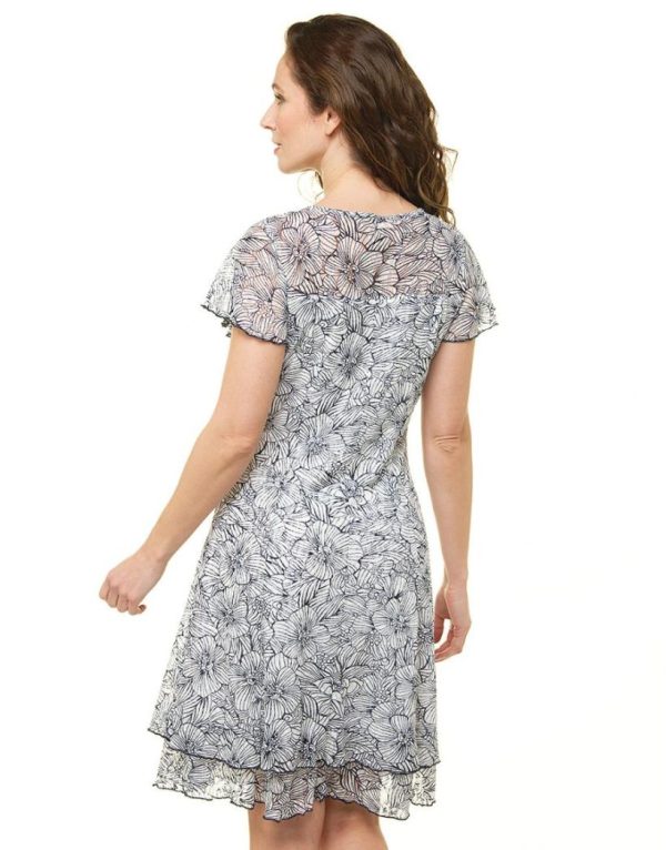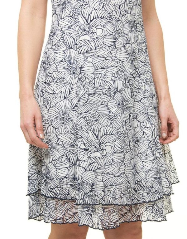 – Robe en dentelle blanc et bleu marine