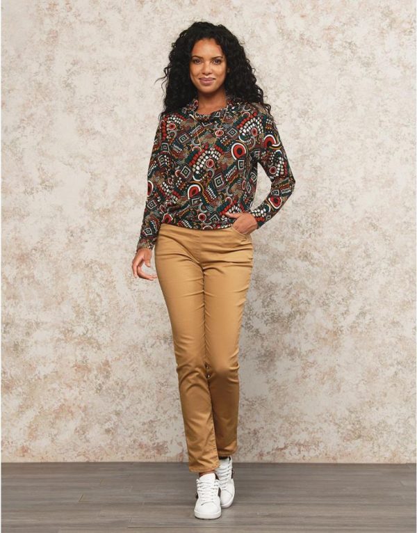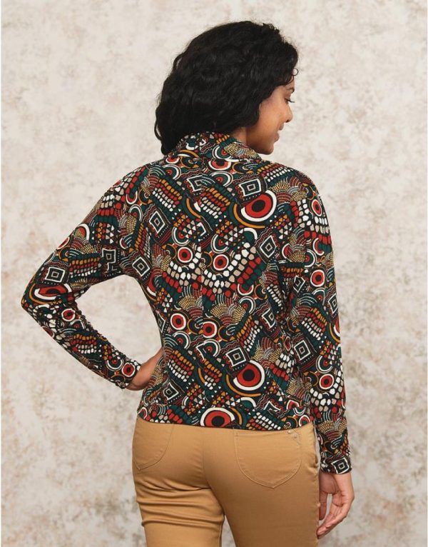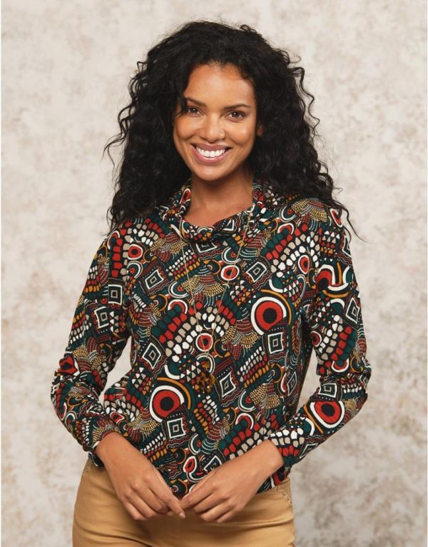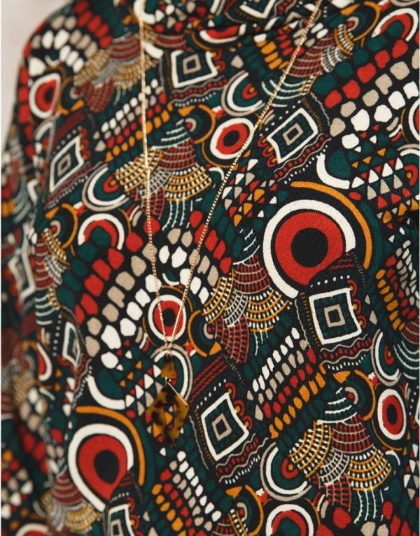 – Un t-shirt d’automne douillet aux motifs hauts en couleurs parfait pour
