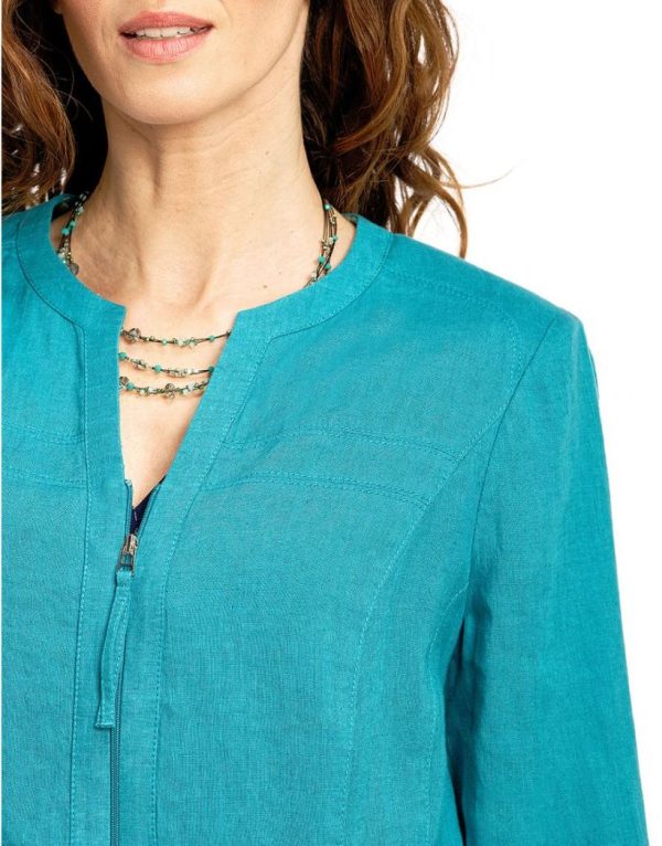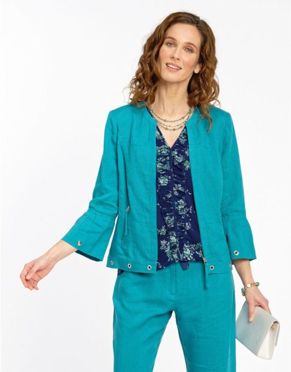 – Veste bleu curaçao 100% lin